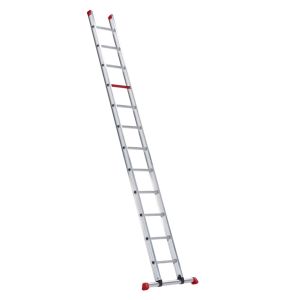 De enkel rechte ladder neemt weinig ruimte in beslag. Bovendien pak je hem er gemakkelijk bij wanneer je hem nodig hebt.