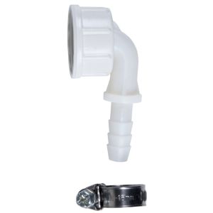 HALVE KOPPELING HAAKS 3/4" X TULE 10MM KUNSTSTOF WIT MET SLANGKLEM [TEC357301]