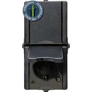 Kopp ProAQA voorbedrade opbouw wandcontactdoos 2-voudig randaarde verticaal. Uitvoering met klapdeksel. 16A/250V AC. IP waarde: IP44.