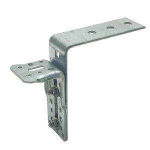 Verstelbare kozijn- vloerverbinding bestaande uit een vloerhoek, een hoekanker en een set slotbouten. De vloerhoek wordt gemonteerd aan de vloerrand. Het hoekanker wordt verstelbaar aan de vloerhoek bevestigd t.b.v. de onderdorpelmontage van kozijnen of puien. Door het afgestemde gatenpatroon kan de hoek na het stellen extra tegen afschuiving gefixeerd worden. Kozijnstelhoeken zijn leverbaar in verschillende afmetingen, uitvoeringen en oppervlaktebehandelingen.