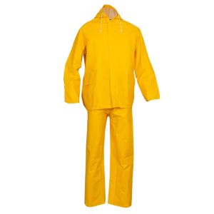 Regenjas met dubbele sluiting met rits, drukknopen en vaste capuchon