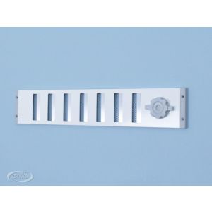 Afsluitbaar rooster vervaardigd van aluminium, opbouw. Rooster is voorzien van een draaiknop, geschikt voor een eventuele koordbediening.